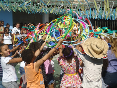 Turma 1301, da professora Jaqueline, fazendo a dança dos arcos típica da região nordeste